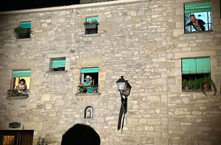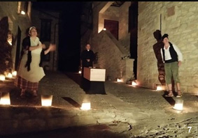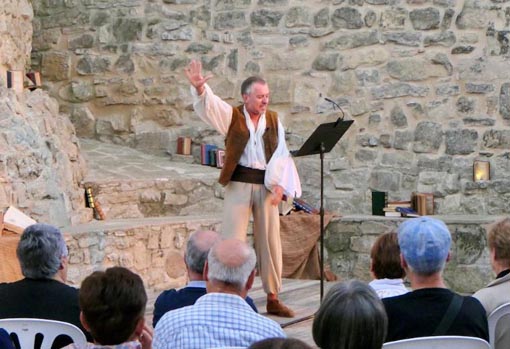 Rapsode en ple carrer de Vallfogona recita el poema del Rector