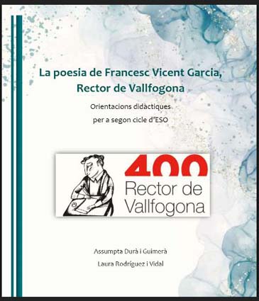 La poesia de Francesc Vicent Garcia, Rector de Vallfogona. L’obra ofereix recursos, materials, estratègies i orientacions didàctiques per als docents de 3r i 4t d’ESO. També s’hi inclou un apunt sobre el moviment del barroc i de la diferent recepció del poeta al llarg dels segles. El dossier ha estat preparat per Assumpta Durà i Laura Rodríguez. Els deu poemes de Francesc Vicent Garcia escollits pel treball han estat adaptats al català actual pel poeta Josep Pedrals. Es pot baixar aquest document en el lligam que segueix La poesia de Francesc Vicent Garcia, Rector de Vallfogona. |