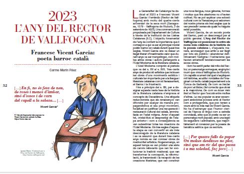 L'ANY DEL RECTOR s'ha acabat, però no la seva fama2023, Any del Rector de Vallfogona. Al mes de desembre, va arribar la fi de la commemoració del IV Centenari de la mort de F.Vicent Garcia. però la seva obra continua ben viva. Ha quedat ben clar qui fou i què fou el Rector de Vallfogona. Ara es reconegut com el poeta més eximi de l'anomenat barroc català.