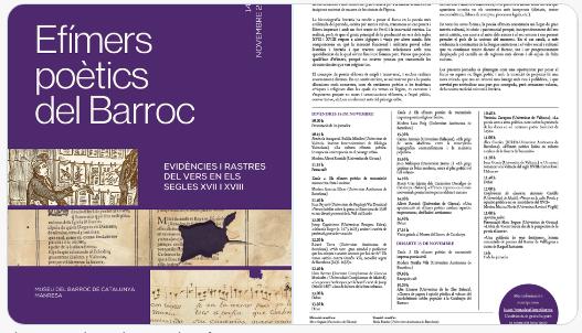 El 14 i 15 de novembre 2025 se celebraren les jornades "Efímers poètics del Barroc. Evidències i rastres del vers en el segles XVII-XVIII”" en el Museu del barroc de Manresa.