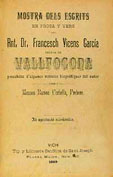 Mostra dels escrits del Dr. Francesc Vicens Garcia, rector de Vallfogona´precedida de quatre notes biogràfiques... Ramon Corbella Llobet. Tercera edició revisada. Impremta i Llibreria Ausetana. Vic, 1912. El Rector de Vallfogona. Joan Amades, .Narracions populars, vol. III. . Dibuixos de Barrillon. Graf. Calmell. Barcelona,1938. |