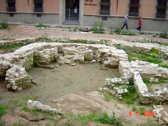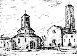 consagrar.El dibuix d' en Pere Puntí, figuradament, representa la capella Santa Maria situada en front de la catedral de Sant Pere i del Palau episcopal. El campanar sí que és versemblant ja que va servir de model per construir el del Monestir de Sant Joan de les Abadesses. A finals del segle XVIIIè, irremeiablement, fou enderrocada. Ens queda però, la Marededéu de la Rodona, una talla policromada de finals del segle XIIè, que es conserva al Museu Episcopal de Vic. És interessant de senyalar que dia 24 de setembre de l'any 1605 , a Santa Maria la Rodona, el bisbe Francesc Robuster va ordenar prevere a Francesc Vicent Garcia, el famós Rector de Vallfogona. L'any 2004-2006 en realitzar excavacions a la plaça de la Catedral, van quedar a descobert les restes arqueològiques d'on estava assentada l'esglesiola anomenada La Rodona. Casualment aquells dies, en una visita a la ciutat, personalment vaig poder fotografiar les runes que ben aviat van quedar novament colgades sota el nou paviment. |
