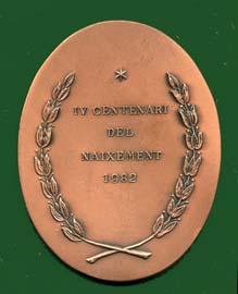 Medalló encunyat en bronze al 1982 en ocasió del IV Centenari del naixement de