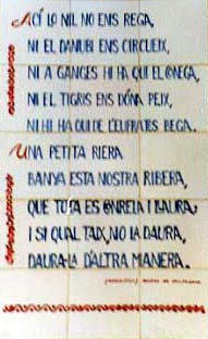 Fragment del poema en resposta a l’amic Ocari convidant-lo a venir. Aquí compara la senzillesa del rierol que passa per Vallfogona amb la magnitud dels grans rius mondials. (Vol. II nº 114b, 96-104)